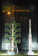 “銀河2號”模型與“白頭山1號”運(yùn)載火箭模型并排展出。“白頭山1號”曾于1998年8月發(fā)射了朝鮮的第一顆人造衛(wèi)星“光明星1號”。“光明星2號”的四面被藍(lán)色太陽能光板覆蓋,頂部安裝有通信天線。解說員向參觀者介紹了發(fā)射情況和意義。