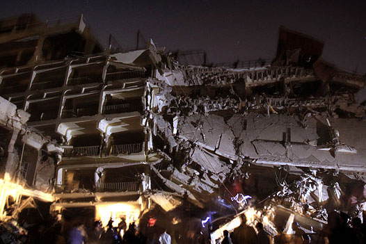 爆炸中,酒店大堂和一樓被炸壞,附近建筑的很多玻璃也被震碎。還有人聲稱在5公里之外都感受到了爆炸的威力。當(dāng)?shù)鼐椒Q,武裝分子使用了500公斤左右的炸藥。