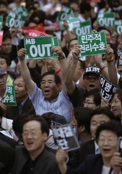 中新網(wǎng)6月11日電 據(jù)法新社報道,韓國一萬多名群眾10日舉行反政府游行,要求李明博下臺。
