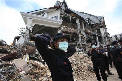 印尼“西蘇門答臘省”首府“巴東”地區(qū)星期三下午發(fā)生里氏7.6級(jí)強(qiáng)震,緊接著第二天早上又發(fā)生一起6.6級(jí)的余震,對(duì)當(dāng)?shù)卦斐蓮?qiáng)大的破壞力,不僅災(zāi)區(qū)被夷為平地,而且斷水?dāng)嚯娪謹(jǐn)嘤崳?lián)外道路也不通,當(dāng)?shù)剡遭滂沱大雨襲擊,使得災(zāi)情更加惡化,救災(zāi)困難重重。