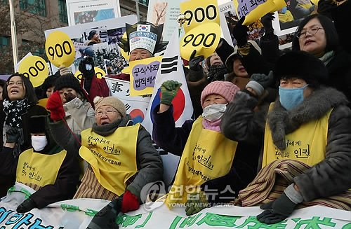 中新網(wǎng)1月13日電 韓國(guó)挺身隊(duì)問(wèn)題對(duì)策協(xié)會(huì)(以下簡(jiǎn)稱(chēng)挺身隊(duì)協(xié)議會(huì))13日下午12點(diǎn)在日本駐韓國(guó)大使館前舉行了第900次周三集會(huì)。