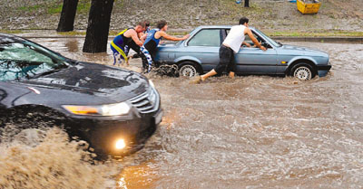 中新網3月7日電 據香港《文匯報》報道,澳大利亞6日遭暴風雨吹襲,暴風時速達100公里。在第2大城市墨爾本,冰雹大如高爾夫球,一些直徑更達10厘米,多項球賽和賽馬活動被迫取消或延期。一個火車站上蓋被冰雹擊穿一個大洞,當局需緊急疏散乘客。