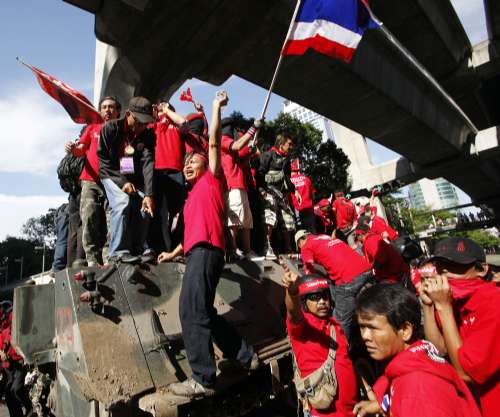 泰國最高法院最近裁定充公他信逾半資產(chǎn),惹來他信的支持者強(qiáng)烈反對。反獨裁民主聯(lián)盟(UDD,俗稱“紅衫軍”)計劃動員百萬民眾,星期五開始在曼谷周邊地區(qū)集合,之后再在曼谷市內(nèi)多處,包括皇家田廣場和國會大樓前,舉行百萬人反政府集會和示威。紅衫軍領(lǐng)袖聲言集會會以和平方式進(jìn)行,目標(biāo)是三日內(nèi)迫使總理阿披實解散國會,重新大選。他們更表示,剛頒布的國內(nèi)安全法不會阻止他們的活動。