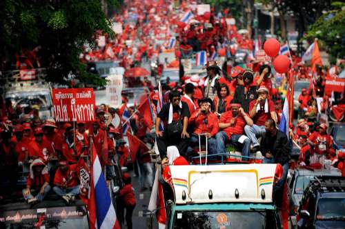 中新網3月21日電 據香港《大公報》21日報道,泰國“紅衫軍”星期六(20日)展開新一輪抗爭行動,分乘逾萬輛車游行經過曼谷市中心,爭取市民尤其是中產階級支持,要求總理阿披實下臺。紅衫軍領袖揚言,他們會在星期日把行動升級,用鮮血繪畫,成為一幅“藝術創作”,希望鼓舞群眾的士氣。