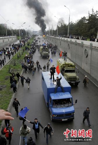 中新網(wǎng)4月8日電 當(dāng)?shù)貢r間4月6日開始,數(shù)千名吉爾吉斯斯坦反對派示威者在首都比什凱克市中心集會游行,并與防暴警察發(fā)生沖突,逐漸演變成騷亂,造成數(shù)百人傷亡。反對派扣押政府高官,占領(lǐng)部分政府機(jī)構(gòu)以及國家電視臺,并稱最終目的是要總統(tǒng)下臺,奪取國家政權(quán)。吉總統(tǒng)巴基耶夫下令全國進(jìn)入緊急狀態(tài),并宣布實(shí)行宵禁。