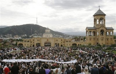 26日是格魯吉亞的獨(dú)立日。當(dāng)天的示威活動(dòng)主要在位于市區(qū)的派恰澤國家體育場舉行,但稍后有大量示威者在街道上游行,前往第比利斯最主要的教堂。