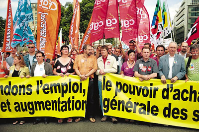 中新網6月14日電 據香港《文匯報》報道,法國工廠工人和公務員13日在全國游行,抗議總統薩科齊處理經濟危機不力。這是法國8大工會今年第5次發起的示威,要求政府采取措施,以緩解國民受全球經濟下滑的影響。