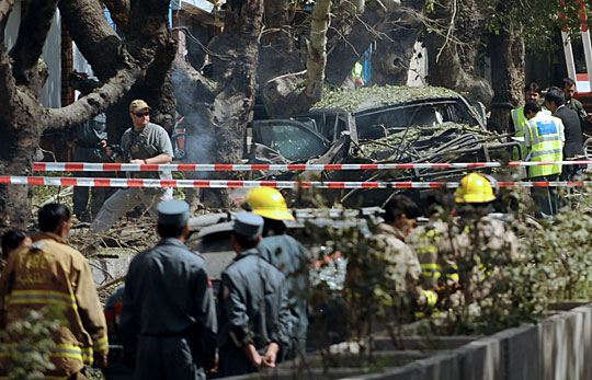 據報道,爆炸發生地附近有多國部隊駐扎。事發于早上8時許,一名自殺式襲擊者駕駛滿載炸藥的汽車,在北約駐阿富汗國際安全援助部隊(ISAF)總部門外引爆炸彈。爆炸導致大樓玻璃粉碎,附近多輛汽車損毀,地上血漬斑斑。