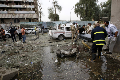 巴格達市中心25日發生兩起汽車炸彈爆炸事件,第一起爆炸發生在當地時間25日上午9點半左右,數分鐘后,巴格達市發生了第二起爆炸。