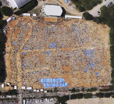 參加集會的有眾多普通市民和縣內(nèi)41個市町村的39名首長。除了該縣選出的執(zhí)政黨國會議員外,前自民黨政權(quán)時期同意將機(jī)場遷至名護(hù)市的自民黨和公明黨的縣支部也參加了大會。自民黨和公民黨沒有參加去年11月的2萬人反基地集會。