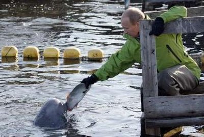 除了展現男子氣概,普京近年亦用心營造柔情一面。俄政府發聲明表示,普京7月31日到了俄羅斯遠東地區,穿起潛水衣,在太平洋的契卡洛夫島為一條白鯨裝上衛星追蹤器。這是一個白鯨遷徙模式研究的一部分。普京當時問:“她不會咬人吧?”他其后更幫手喂飼其他白鯨。普京當日又到700公里外的哈巴羅夫斯克市,出席一條新天然氣輸氣管的啟用儀式。