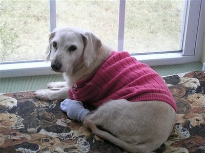 夏妮是六個(gè)星期大的時(shí)候,在收容中心被主人認(rèn)養(yǎng),從一只棄犬變成好命狗,這些年,它因?yàn)榘變?nèi)障,必須戴護(hù)目鏡,主人幫它量身訂做了一副眼鏡,老狗怕冷,主人還幫它織毛衣。日前夏妮在住處壽終正寢。