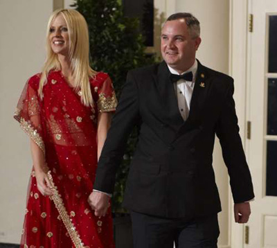 不過,薩拉西夫婦衣著筆挺:男士穿著黑色的晚禮服,女士一襲紅色的沙麗,而且神態從容。也許是優雅的外表,使他們不僅通過檢查進入白宮,而且還和其它來賓、包括美國副總統拜登、白宮幕僚長伊曼紐爾和華盛頓市長芬蒂在內的人交談、合影。
