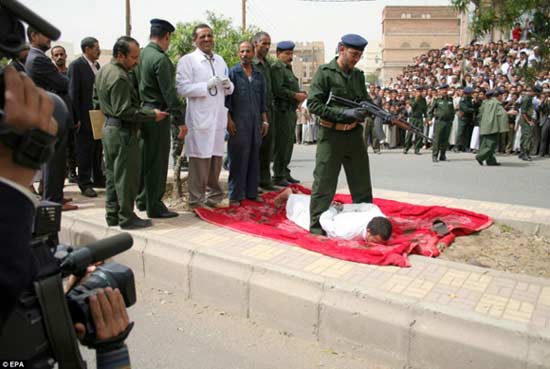 據英國《每日郵報》6月7日報道,一名強奸并謀殺了一名11歲男孩的也門男子日前當街被執行了槍決。他先被游街示眾,隨后在眾目睽睽之下被行刑者擊中頭部槍決。數百名旁觀者目睹了這一可怕場面。