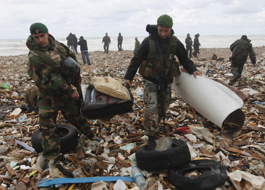 目前,有關方面已經鎖定了飛機墜海的地點,為黎巴嫩沿海小鎮納阿梅以西約3.5公里海域。飛機墜毀后幾個小時,一些殘骸和機上物品被沖上了附近的海岸,包括座椅、嬰兒鞋、滅火器、手提箱和藥瓶等。