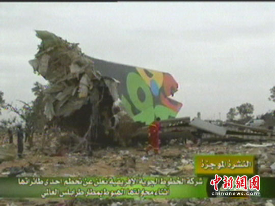 利比亞電視臺播放的新聞畫面顯示,客機失事后,現場遍地殘骸一片狼藉。