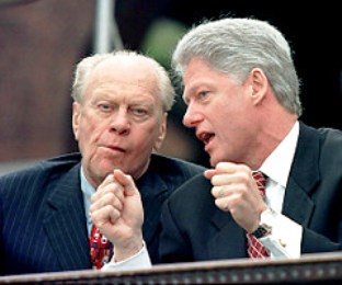 福特夫婦1993年首次與克林頓夫婦見面,他們當(dāng)時邀請新的第一家庭至他們科羅拉多的家中作客。福特對克林頓的印象好壞參半,他認(rèn)為克林頓很有個人魅力、說話準(zhǔn)確、善于推銷,是他所見過的最好的政治家,甚至要比肯尼迪總統(tǒng)都強(qiáng),但他認(rèn)為克林頓在外交政策方面很弱。福特還感到克林頓沒有吸取他個人生活的錯誤,有關(guān)他風(fēng)流行為的傳聞在他進(jìn)行總統(tǒng)競選活動時一直困擾著他。福特稱,他得出這樣的結(jié)論是出于他對克林頓夫婦的觀察,他曾邀請克林頓夫婦在科羅拉多度周末。他后來說:“我可以告訴你一件事:他不放過社交場合的任何一位漂亮女士。我可以告訴你,他一直色迷迷的。貝蒂有著同樣的印象,他毫不掩飾自己的興趣。”
