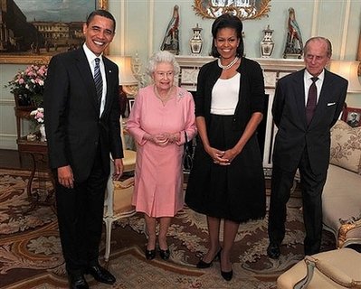 中新網4月2日電 美聯社消息,在倫敦參加20國集團峰會(G20)的美國總統奧巴馬夫婦當地時間1日與英國女王伊麗莎白二世及王夫菲利浦親王舉行會晤。