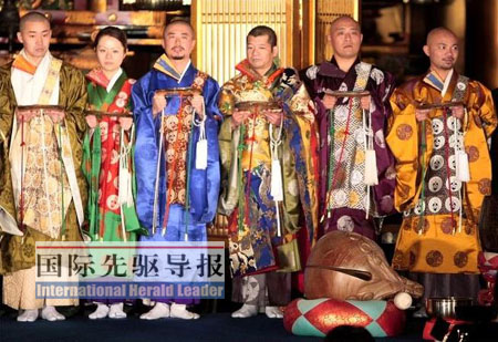 2007年歲末,有近百年歷史的東京筑地本愿寺舉辦了一場別具一格的“時(shí)尚僧衣秀”。來自日蓮宗、天臺(tái)宗、真言宗等日本八大佛教宗派的近40名和尚尼姑分批登場,伴隨著嘻哈節(jié)拍的佛樂走起“貓步”,向觀眾展示精美華麗的各色僧侶服裝。
