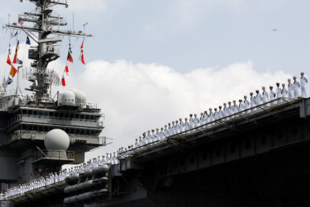 除裝備和船體的處置外,人員安置也頗費時間!靶→棥碧柹舷群笥谐^900人要調到“華盛頓”號,人員調動并不是一次性完成的,可能會持續到明年初。其他2000多人或隨“小鷹”號一起退役,或另有軍內安排。