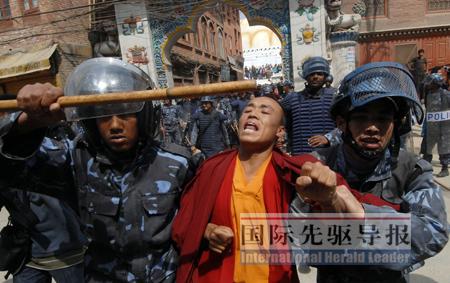 次仁們算是幸運的。《國際先驅導報》記者在現(xiàn)場看到,被煽動沖在前面和尼泊爾警方對峙、沖突的多是青少年,而那些“藏獨”骨干則在現(xiàn)場附近拿著手機指揮、清點人頭。