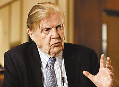 1999年諾貝爾經濟學獎得主、“歐元之父”蒙代爾(資料圖)