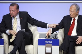 土耳其總理埃爾多安發言時手指著一旁的以色列總統佩雷斯