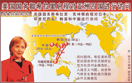 在訪問日本、中國和韓國期間,希拉里將致力于讓六方會談恢復(fù)到正常軌道上。日本認(rèn)為,布什政府在朝鮮綁架日本公民的問題上沒有對平壤施加足夠的壓力,而韓國對朝鮮的威脅日益臨近感到擔(dān)憂。希拉里此前曾表示,如果朝鮮準(zhǔn)備結(jié)束其核武器計(jì)劃,奧巴馬政府愿意考慮實(shí)現(xiàn)兩國關(guān)系正常化。