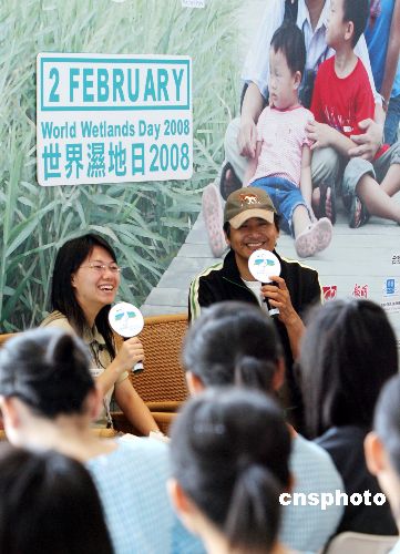 十月二十日,國際影視巨星周潤發(fā)在香港濕地公園舉行的世界濕地日2008香港區(qū)慶祝活動啟動儀式上,獲頒濕地保育大使委任狀。中新社發(fā) 武仲林 攝