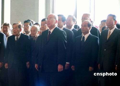 十一月十二日,中國國民黨主席吳伯雄率同馬英九、蕭萬長、王金平等黨內人士前往臺北“國父紀念館”獻花,紀念孫中山先生誕辰一百四十一周年。中新社發 劉舒凌 攝