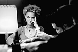 《藍莓之夜》中,諾拉瓊斯扮演的伊麗莎白在拉斯維加斯遇到了波特曼扮演的萊斯利,失戀的伊麗莎白在萊斯利身上找到同感,據王家衛開玩笑透露,這部電影中惟一的“床戲”就由兩人演出,當然兩人是趟在床上談心。據趙薇經紀人陳蓉介紹,為了娜塔麗·波特曼的角色,趙薇從12月4日晚6點到第二天凌晨5點全泡在錄音棚里,王家衛認為趙薇的聲音和波特曼的氣質比較相符,因此他對趙薇的配音非常滿意。