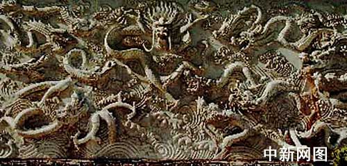 百龍壁:龍是中華民族的象征,是一種圖騰信仰。為什么在此塑108條龍呢?唐武德三年(庚辰),李世民與劉武周在綿山下雀鼠谷大戰受挫.此時,突然天上金鼓轟鳴,隨著從唐軍后面殺出108條白衣白甲的好漢.他們個個勇猛無比.經過一陣廝殺擊敗了劉軍.化為108條龍飛向綿山.后李世民得知是雷神普化天尊相助,便在這里塑了百龍壁。