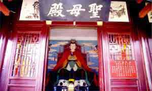 媽祖殿:媽祖是一位海神,保佑船家以及海上的平安.媽祖在我國南方沿海及東南亞、日本、朝鮮一帶極受崇拜。那么為什么要在綿山修媽祖殿呢?明清時期著名皇商介休范家,由于常有海上貿易,是舉世聞名的船幫。有一次,他們又有出海業務,船隊在大海中飄泊已有半月。此時忽然狂風驟起,烏云翻滾,四周一片漆黑,并發生了海嘯,眼看就要人仰船翻。船上的人驚慌失措,心中默念海神,希望得到救助。就在此危難時刻,突然從海中緩緩升起一位站在白蓮臺上的朱衣女子。她往海中扔了顆定風珠,風漸漸小了,天也亮了,一切又平靜下來,好象什么也沒發生過。當人們回過神來,再看這位朱衣女子時,已經騰空而去。人們頓時明白這是海神媽祖娘娘顯靈救了他們。此次出海他們滿載而歸;氐浇樾莺螅瑸榱烁兄x媽祖娘娘的救命之恩,在綿山建廟供奉媽祖。媽祖為閩南方言,又稱“天上圣母”,“天后娘娘”。她能預言禍福,善于治病救人。農歷三月初三和九月九日是媽祖的生日和升天日。媽祖左側為吳天醫,醫術高超,救人無數;右側為順天圣母,能除蛇妖,催生助產,是保護婦女、兒童之神。
