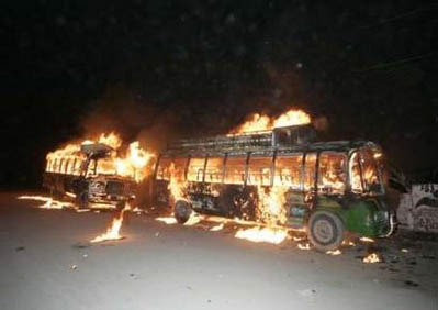 圖文:貝-布托的支持者們焚燒汽車