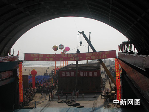 十二月二十八日,“南海一號(hào)”將進(jìn)入“水晶宮”,中午十二時(shí),它依然倚門(mén)翹首在“水晶宮”前,預(yù)計(jì)下午可以入住。 索有為 攝