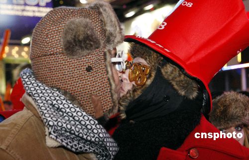 2008年來臨的第一刻,人們聚集在紐約時代廣場慶祝新年來臨。