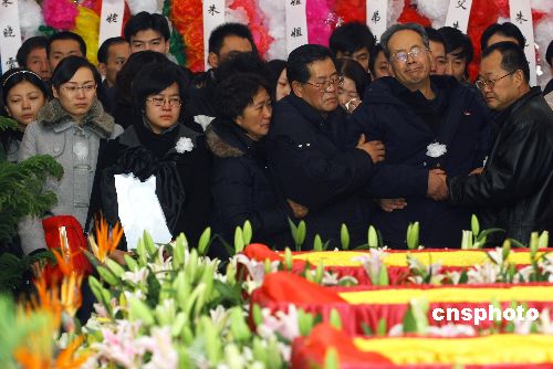 追悼會現(xiàn)場,三位烈士家屬痛悼英靈。