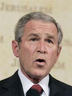 布什在與以色列總理奧爾默特會談結束后表示:“伊朗是全世界的威脅。我想重復以前說過的一句話:如世界各國不團結一致阻止伊朗獲得研制核武器的技術,那么它過去、現在和將來都是威脅。”