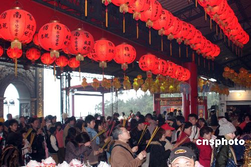 中國農歷鼠年春節期間,臺灣民眾仍保持到寺廟進香的傳統。圖為臺北指南宮內香客云集。