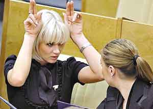 進(jìn)入到統(tǒng)一俄羅斯黨后,這5名迷人的女星基本分散在不同選區(qū),憑借著廣泛的知名度和極高的人氣,她們都成為所處選區(qū)的高票獲得者。如朱洛娃所在的統(tǒng)一俄羅斯黨列寧格勒區(qū)分部,在10名競(jìng)爭(zhēng)分部參選國(guó)家杜馬議員的黨員中,只有排名前3名的黨員才獲得參選資格,朱洛娃的得票排第2位,并最終順利當(dāng)選國(guó)家杜馬議員,目前她是國(guó)家杜馬法律委員會(huì)成員。《星期日泰晤士報(bào)》甚至強(qiáng)調(diào),普京與執(zhí)政黨之所以能夠大獲全勝,包括霍爾金娜等在內(nèi)的5大性感美女功不可沒。如今,霍爾金娜等5名進(jìn)入國(guó)家杜馬的美女議員已經(jīng)被外界稱為“普京寶貝”。
