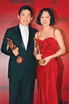 中新網(wǎng)3月18日電 第二屆亞洲電影大獎(jiǎng)?lì)C獎(jiǎng)禮昨晚在灣仔會(huì)展舉行,亞洲多地名導(dǎo)、紅星匯聚頒獎(jiǎng)禮,大熱門梁朝偉憑《色,戒》奪影帝,全度妍則憑《密陽》勇奪影后殊榮,該片奪三項(xiàng)大獎(jiǎng),是今年的大贏家。
