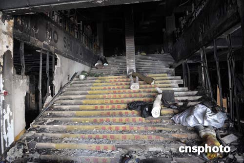 3月19日,拉薩朵林格路上一家被焚毀的服裝店內呈現一片狼籍。