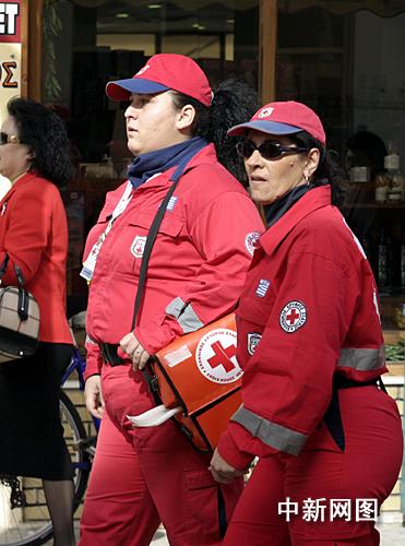 希臘當地時間3月24日,北京二00八年奧運會圣火采集儀式在古奧林匹亞競技場舉行。儀式開始前,身著醒目紅色工作服的救護人員準備入場。 中新社記者 王歡