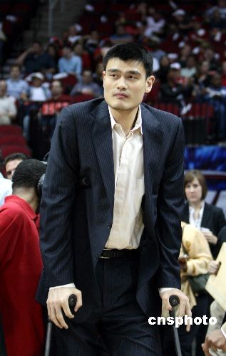 圖:姚明拄拐助威 火箭隊大勝森林狼