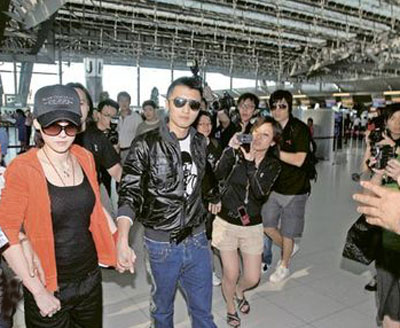 據香港明報報道,自今年1月底發生藝人艷照風波,雖霆鋒以情未變回應事件,但柏芝仍拒在公開場合露面。但是昨日,赴泰國探班的柏芝與霆鋒十指緊扣亮相,更大方讓記者拍照。霆鋒在泰國的工作雖未完成,但他也要先護送妻兒返港,一家三口幸福洋溢。
