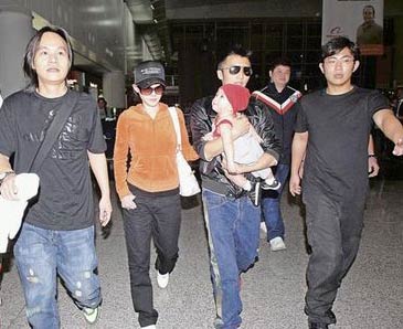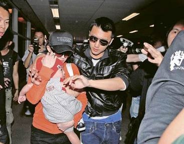 據(jù)香港明報(bào)報(bào)道,霆鋒與柏芝帶著兒子Lucas(謝振軒)前晚10時(shí)許由曼谷返抵香港,雖得4名保安開(kāi)路,但難敵現(xiàn)場(chǎng)數(shù)十名守候的記者。霆鋒雙手抱著Lucas,柏芝的手還是要挽住霆鋒的手臂不放。
