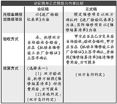 據(jù)市工商局合同處王珊處長介紹,合同范本主要適用甲方委托乙方進行的汽車總成修理、整車修理或道路運輸營運車輛的二級維護。