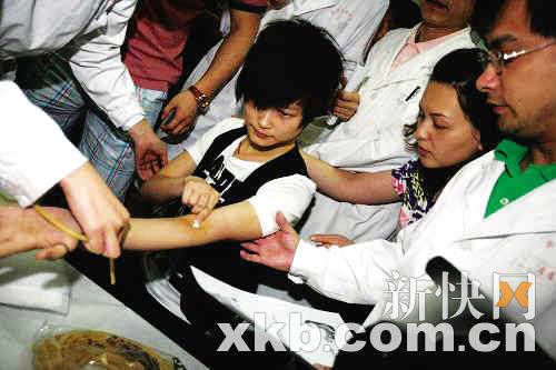 胡小姐表示,照片里兩只手都被扎針,是因為一只手是驗血,另外一只手則是抽血。“這是常識,有過獻(xiàn)血經(jīng)驗的人都知道。當(dāng)天獻(xiàn)血很多人看到了,光我們公司就有很多藝人去了,電視臺也有記者去了,東南衛(wèi)視已經(jīng)播了這條新聞。”