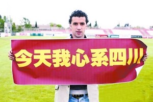 四川汶川地震牽動人心,包括許多國際足球明星也受到了震撼。巴西球星羅比尼奧、馬德里競技前鋒阿奎羅、葡萄牙球星西芒、阿根廷國家隊主力中場馬克西等人昨天紛紛聲援四川,他們舉起了中文橫幅,向死者哀悼。