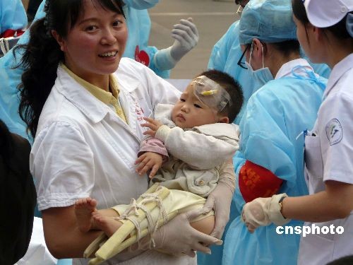 圖:汶川地震災區的一批重傷員抵達重慶